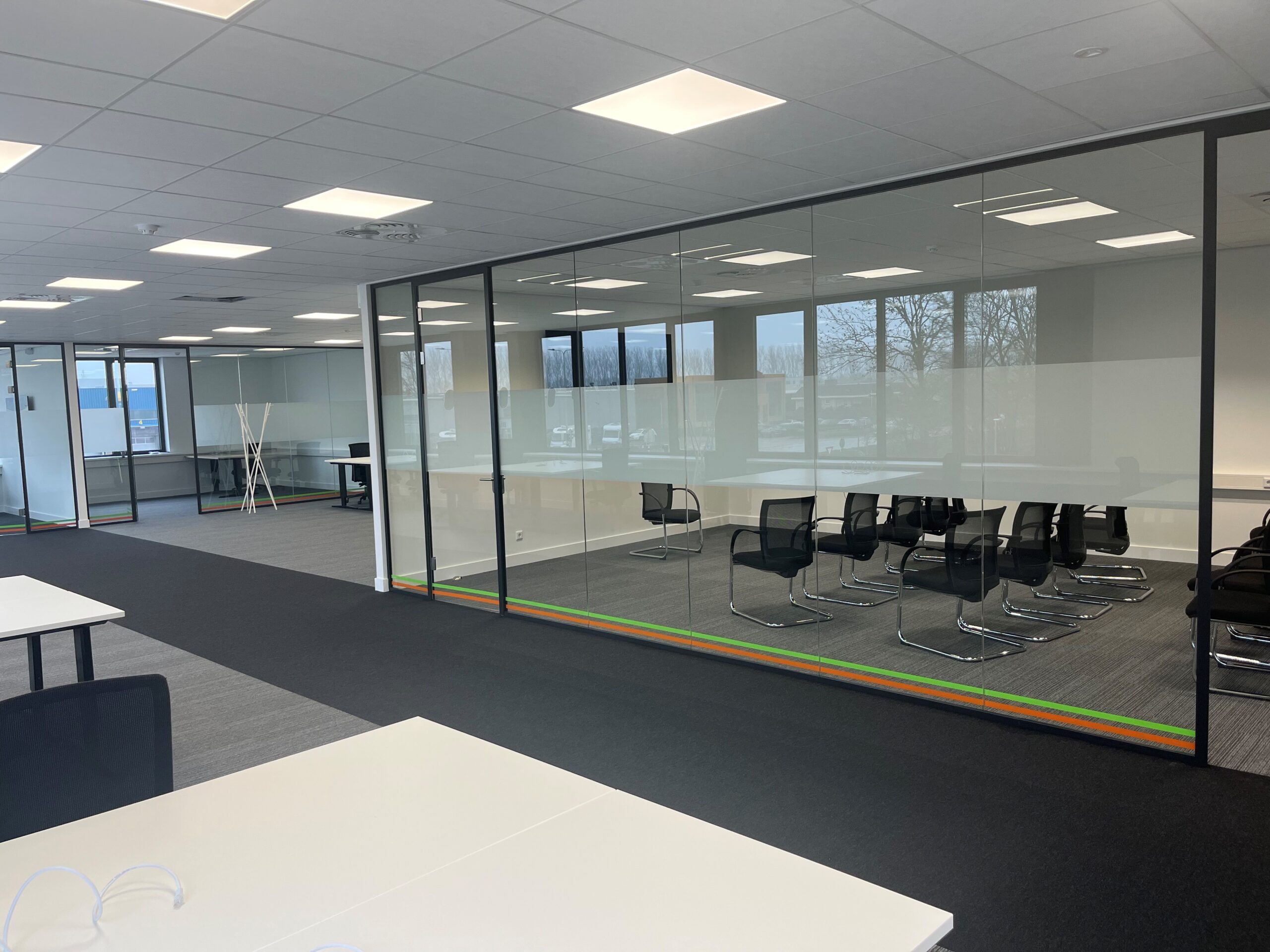 Transparante kleurfolies maken het mogelijk om licht subtiel te filteren en de sfeer in een ruimte te beïnvloeden. Ideaal voor bijvoorbeeld kantoren, projectruimtes of exposities waar beleving en uitstraling samenkomen.
